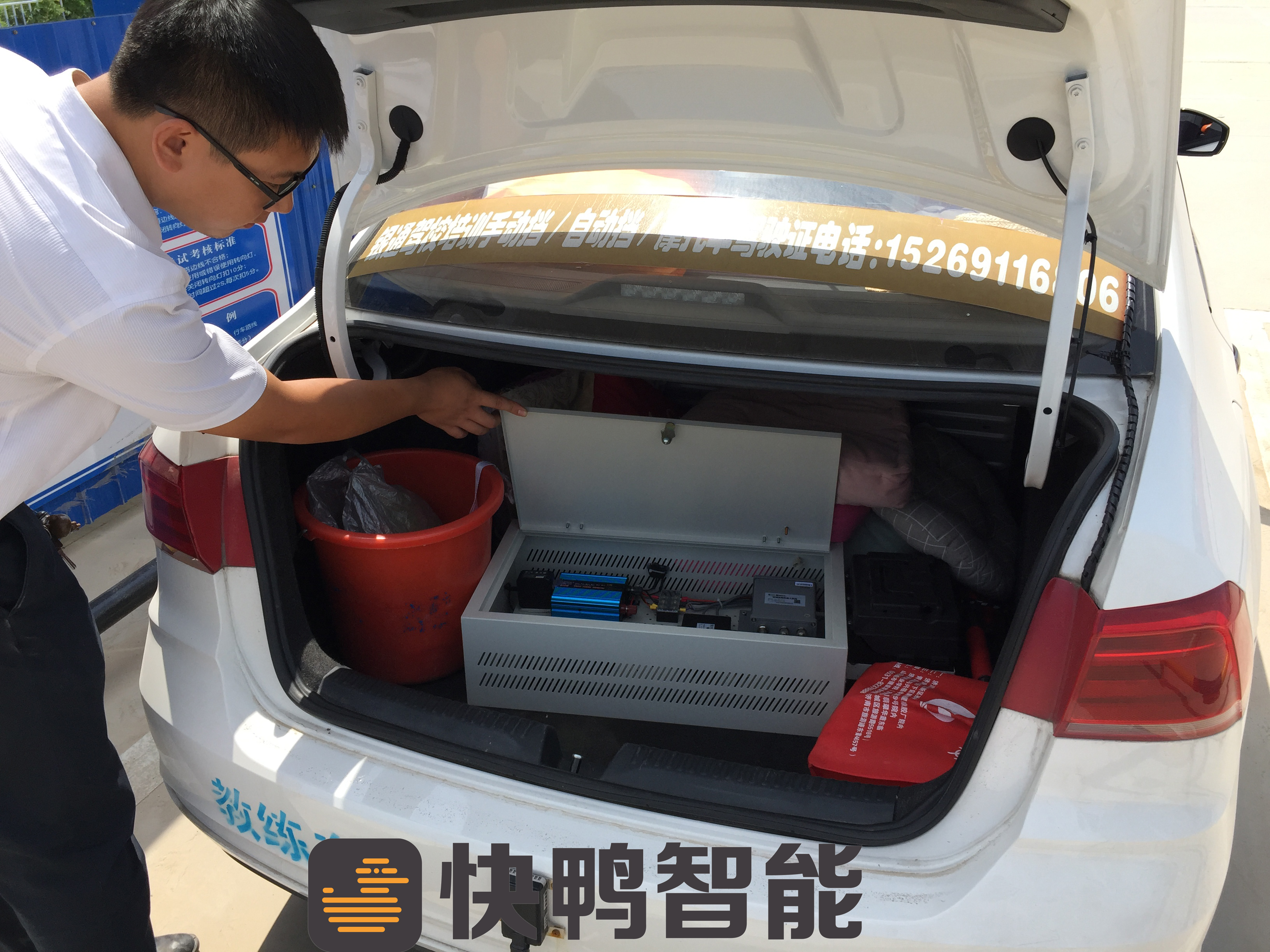 機(jī)器人教練的中央處理器位于后備箱內(nèi) 這是機(jī)器人的“大腦” 首席記者 吳永功 攝