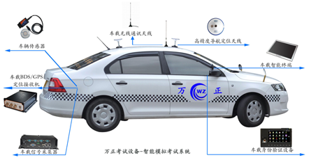 萬正駕�?颇慷M設備+科目二考場設備是一套集成衛(wèi)星定位技術、計算機技術、數(shù)字通信等技術于一體的綜合性智能系統(tǒng),萬正駕�?颇慷M設備+科目二考場設備采用了目前最先進的RTK (Real Time Kinematic)實時動態(tài)定位技術,該系統(tǒng)的硬件部分主要包括高精度GNSS天線+吸盤底座、基準站系統(tǒng)、車載系統(tǒng)、和車輛信息采集器。